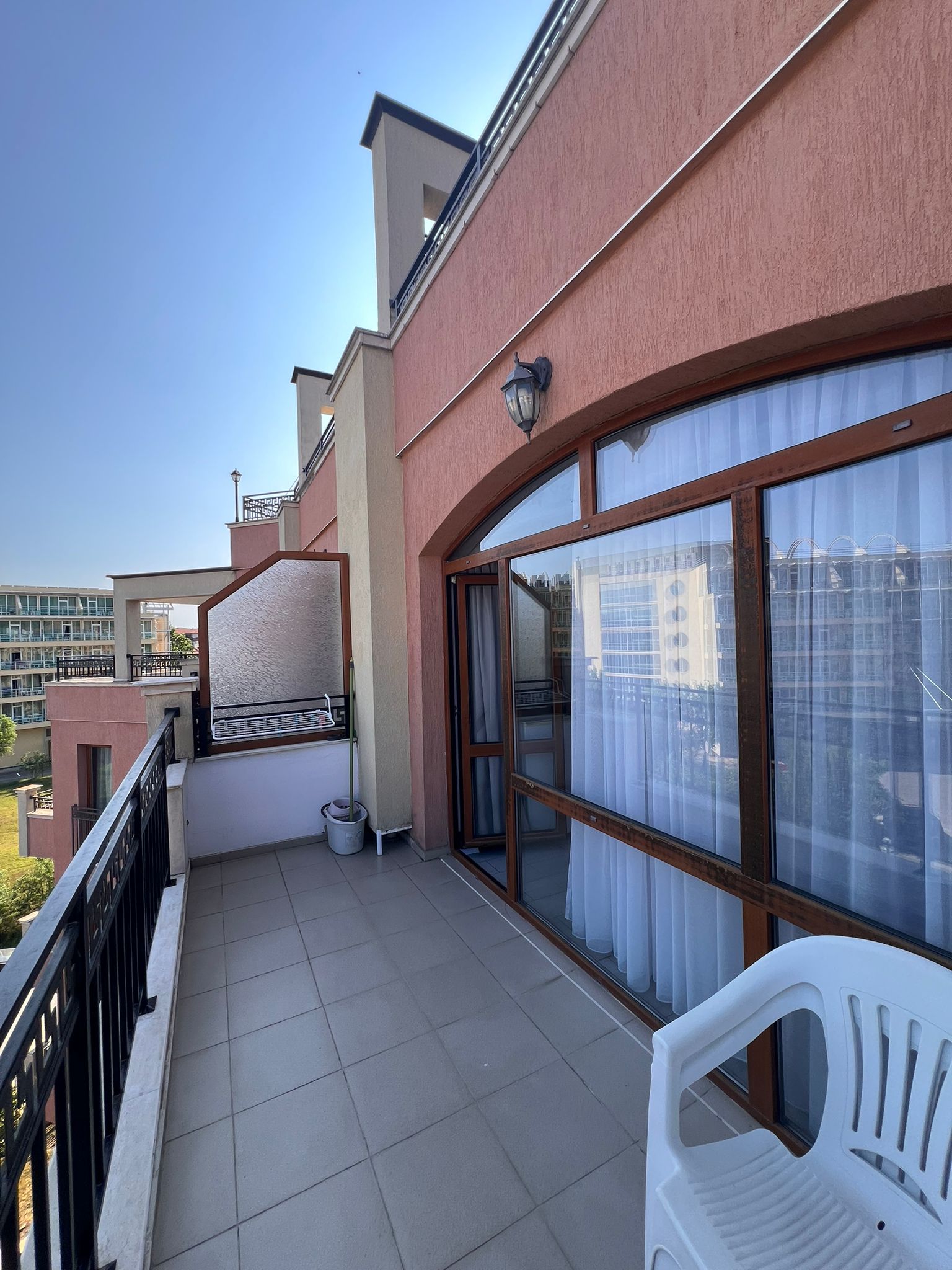 Жилището е с площ от 41 кв.м., обзаведено с модерни и качествени мебели. Разпределението е следното: входно антре, просторна всекидневна със зона за сън, балкон с гледка към басейна, килер, баня с тоалетна.
